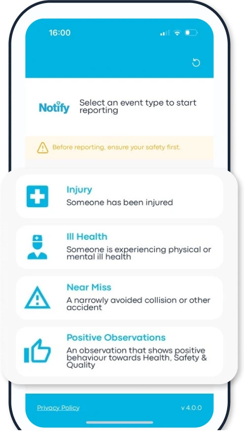 Ready to reduce incidents, drive a positive safety culture and effectively manage your proactive and reactive safety approach? Book your free, no-obligation Health and Safety App demonstration to see how Notify can help your people be safer, healthier and more productive at work.