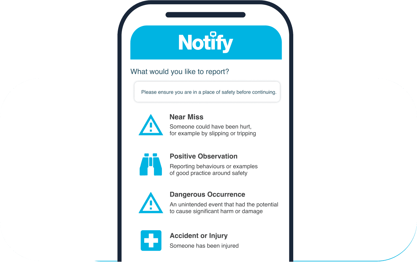 Ready to reduce incidents, drive a positive safety culture and effectively manage your proactive and reactive safety approach? Book your free, no-obligation health and safety software demonstration to see how Notify can help your people be safer, healthier and more productive at work.